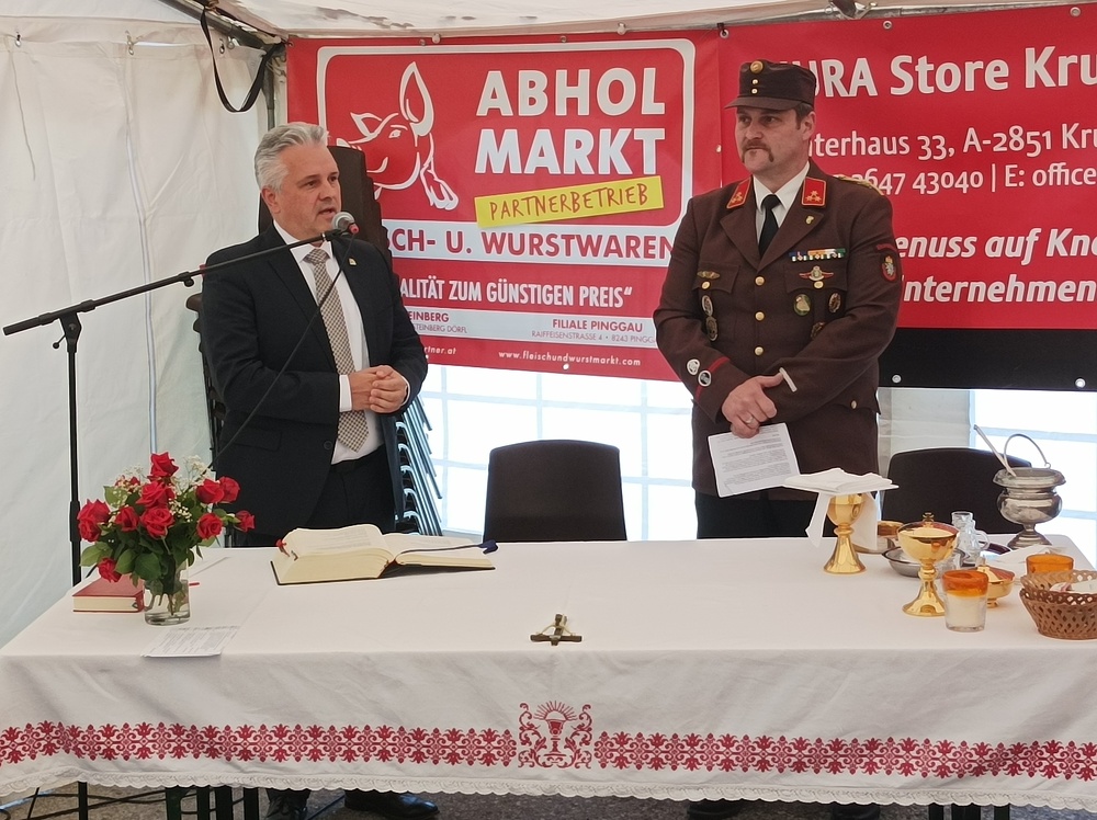 Vikar Patrick Schützenhofer zelebrierte die Festmesse, die musikalisch vom MGV Wechselklang begleitet wurde. Dann segnete er das mit viel Engagement großzügig erweiterte Rüsthaus.